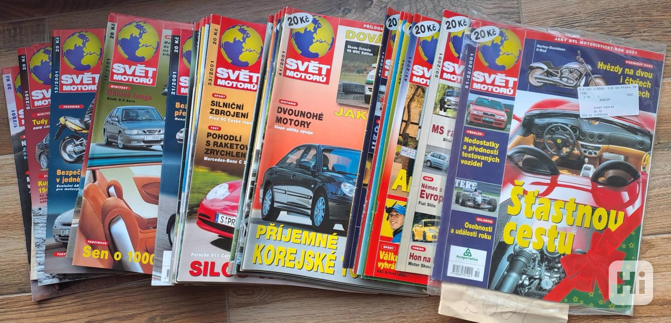 Prodám časopisy Svět motorů, kompletní ročníky 2001 (1-51/51/2), 2002 (1-51/52), 2003 (1-51/1-04), 2004 (2-52/1-05), stav dobrý. Cena 400 Kč za ročník + poštovné.